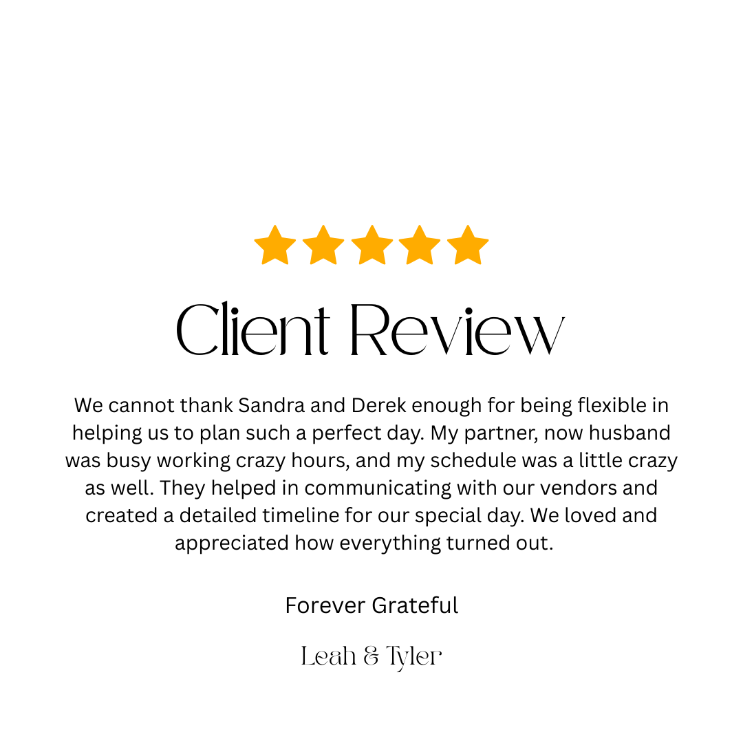 My name is Sandra a certified wedding planner through CWP Society and Owner of Sandera Event Consulting and Design, LLC. I’m excited to share my love and creativity in wedding/event planning! My goal is to be sure your day is perfect and putting your mind at ease, having the honor to be a part of such a happy and joyous occasion. Being your certified wedding planner, you will have nothing but the best from myself and team of wedding pros. Clients do have the option to hire wedding /event professionals on our vendors list. They have been curated and chosen based on quality, reputation, honor, ethics, talent, and reliability, I promise you, that your wedding, corporate or anything event planning will be curated with love and dedication nothing less. We will be sure to stay in communication regularly and be with you and your fiancé until all expectations are met. My team and I will work diligently to ensure the planning process is smooth from beginning to end and your wedding day is a flawless execution.